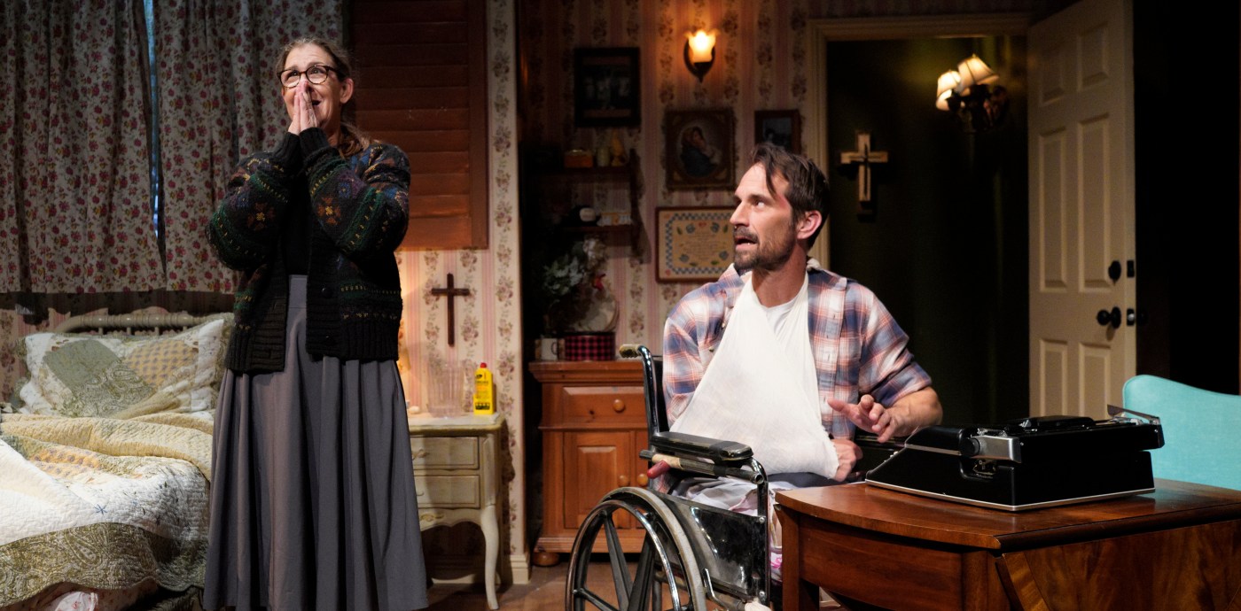 The play is written by the 1990 film screenwriter William Goldman, and the versions remain relatively similar. Famous romance novelist Paul Sheldon (Francis Gerke) wakes up from a car crash to find that he has been saved by Annie Wilkes (Maggie Carney), his self-described number-one fan. What begins as a simple kinship between an injured man and a kind caretaker slowly devolves into an obsession-driven hostage situation from which Paul feels there is no escape. The cast is rounded out by a visit from Buster (Alex Guzman), a local state trooper looking for Paul.